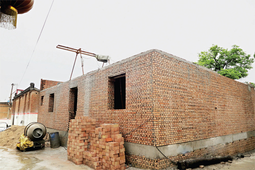 7月20日上午,記者驅(qū)車來到忻府區(qū)解原鄉(xiāng)北趙村。在一個緊鄰村委會北側(cè)的逼仄巷子里,記者見到了這棟已經(jīng)停工的紅磚房。一層和地下室主體已經(jīng)建成,修葺齊整的墻面與周圍的土階茅屋形成了鮮明的對比,沙子、攪拌機堆放在旁邊,讓本就不寬敞的巷子顯得更加擁擠不堪。