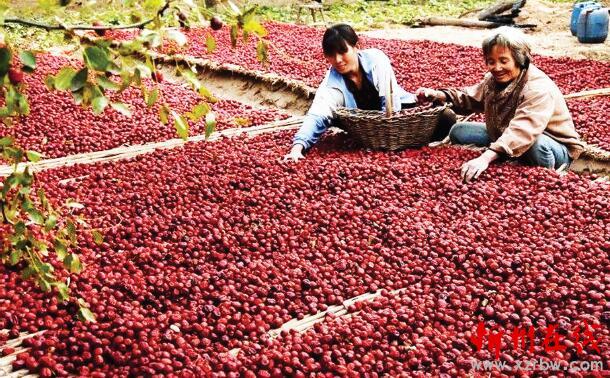 圖為棗農(nóng)正在晾曬紅棗。(陳璐 攝)
