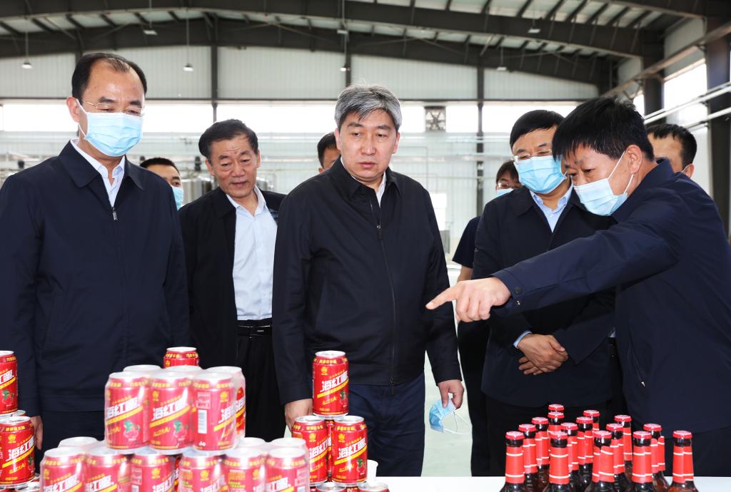 朱曉東在海紅果飲品項(xiàng)目生產(chǎn)線(xiàn)調(diào)研。記者 范濤 攝