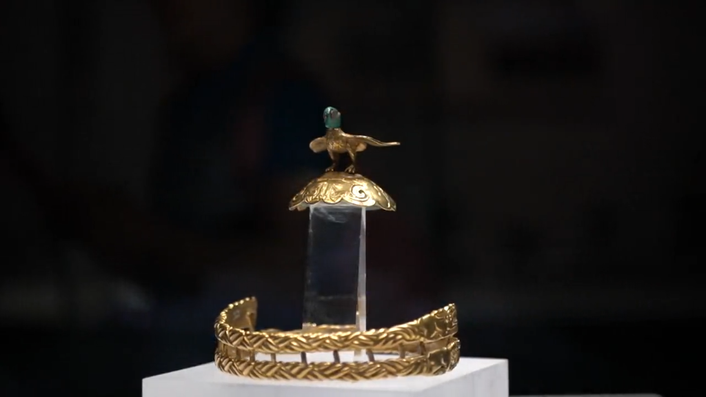 鷹頂金冠飾被稱為“草原瑰寶”,代表了戰(zhàn)國時期我國北方草原民族貴金屬工藝、設計制造的最高水平。