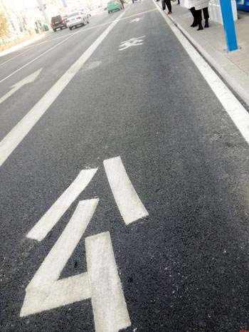 圖為城區(qū)長(zhǎng)征中街(君華新天地對(duì)面)一公交站牌處,印在路面上的“公交車(chē)”三個(gè)字順序錯(cuò)誤。正常閱讀順序是從上至下,從左至右,希望相關(guān)部門(mén)更正。一網(wǎng)友攝