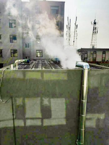 圖1為城區(qū)榮鈺苑小區(qū)院內(nèi)一飯店,四個排氣煙筒發(fā)出的噪音讓小區(qū)周邊居民無法正常休息,排放出的油煙散發(fā)出嗆人的味道,住戶沒法開窗戶,希望相關部門管理。一網(wǎng)友攝