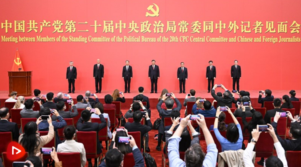“我們一定牢記黨的性質和宗旨,牢記自己的使命和責任,恪盡職守、勤勉工作,決不辜負黨和人民重托?!?3日中午,在中國共產(chǎn)黨第二十屆中央委員會第一次全體會議上當選為中共中央總書記的習近平,率領新一屆中央政治局常委在人民大會堂同采訪黨的二十大的中外記者親切見面。習近平總書記發(fā)表重要講話時強調:“藍圖已經(jīng)繪就,號角已經(jīng)吹響。我們要踔厲奮發(fā)、勇毅前行,努力創(chuàng)造更加燦爛的明天。”
