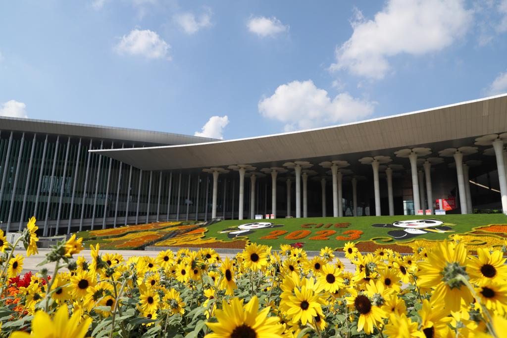 這是10月24日拍攝的國(guó)家會(huì)展中心(上海)南廣場(chǎng)。位于上海青浦的國(guó)家會(huì)展中心(上海)場(chǎng)館外部進(jìn)博會(huì)主題裝飾工程目前已進(jìn)入收尾階段,包括南廣場(chǎng)在內(nèi)的四個(gè)出入口都已裝飾一新,迎接即將開(kāi)幕的第六屆中國(guó)國(guó)際進(jìn)口博覽會(huì)。新華社記者 方喆 攝