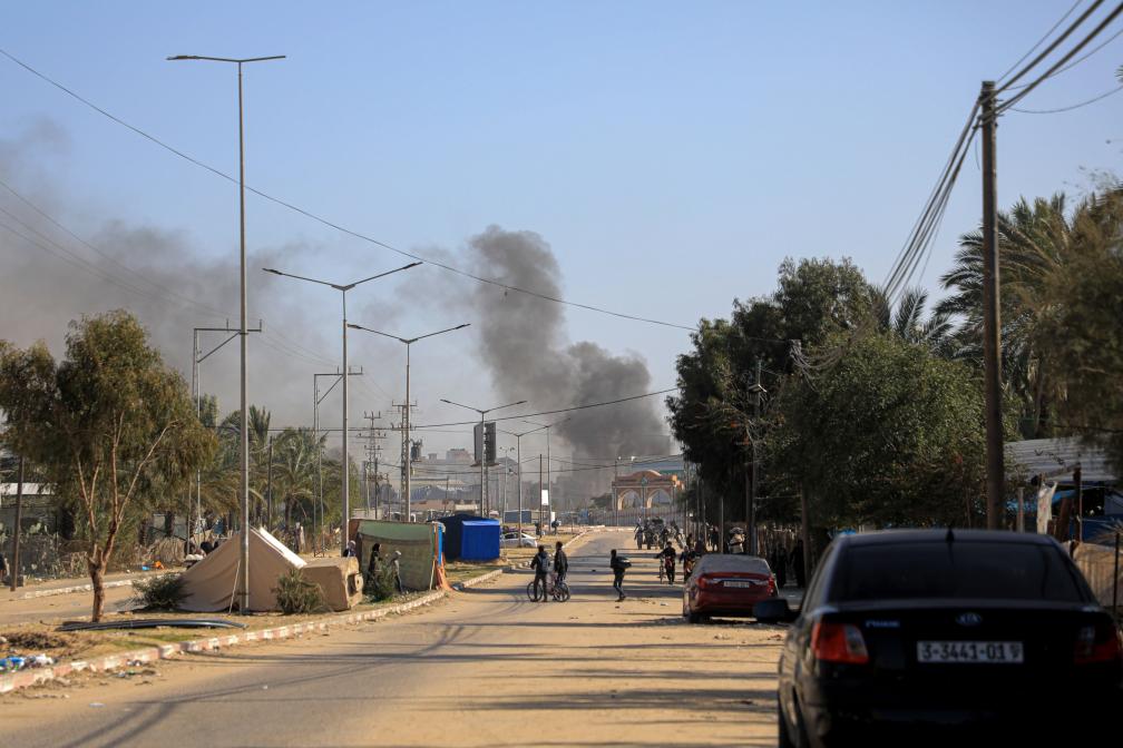 1月22日,加沙地帶南部城市汗尤尼斯遭到以軍攻擊后升起濃煙。新華社發(fā)(里澤克·阿卜杜勒賈瓦德攝)