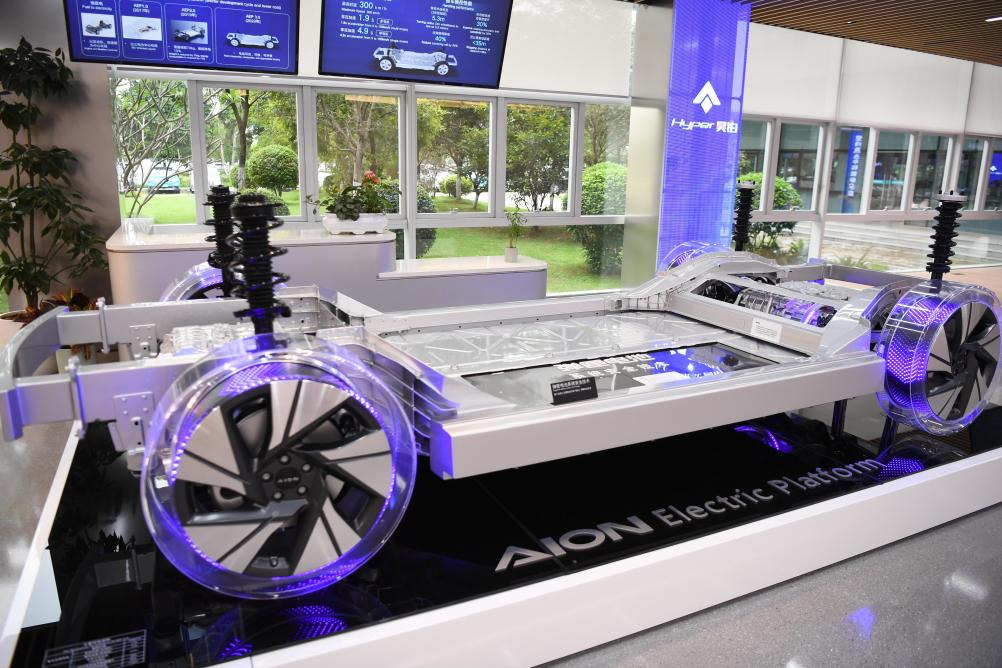 這是廣州廣汽埃安展出的純電平臺模型(4月24日攝)。據(jù)國際能源署測算,2030年全球新能源汽車需求量將達到2022年的4.5倍,當前新能源汽車產(chǎn)能遠遠無法滿足全球市場的需求。從需求端的巨大潛力來看,中國新能源領域產(chǎn)能遠未“過剩”。新華社記者鄧華攝
