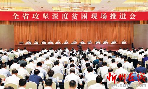 山西日報訊(記者尚慧輝)6月19日,省委在忻州召開全省攻堅深度貧困現(xiàn)場推進會,也是省委中心組擴大的專題學(xué)習(xí)會。會議以習(xí)近平扶貧思想為指導(dǎo),分析一年來全省攻堅深度貧困形勢,堅持目標(biāo)和問題導(dǎo)向,激勵干部更好擔(dān)當(dāng)作為,強化精準(zhǔn)用力舉措,下足繡花功夫,為堅決打贏脫貧攻堅戰(zhàn)奠定扎實基礎(chǔ)。省委書記駱惠寧出席會議并講話,他強調(diào),要認(rèn)真學(xué)習(xí)貫徹習(xí)近平總書記對打贏脫貧攻堅戰(zhàn)三年行動的重要指示,按照中央指導(dǎo)意見及省委部署,咬定總攻目標(biāo),落細攻擊點位,完善督戰(zhàn)機制,奪取戰(zhàn)役全勝。打贏三年脫貧攻堅戰(zhàn),必須牢牢抓住主要矛盾、聚焦深度貧困,做到焦點不散、靶心不變,持續(xù)用力、盡銳出戰(zhàn),以攻堅深度貧困帶動面上扶貧工作。國務(wù)院扶貧開發(fā)領(lǐng)導(dǎo)小組副組長、國務(wù)院扶貧辦主任劉永富出席會議并講話。省委副書記、省長樓陽生主持會議。