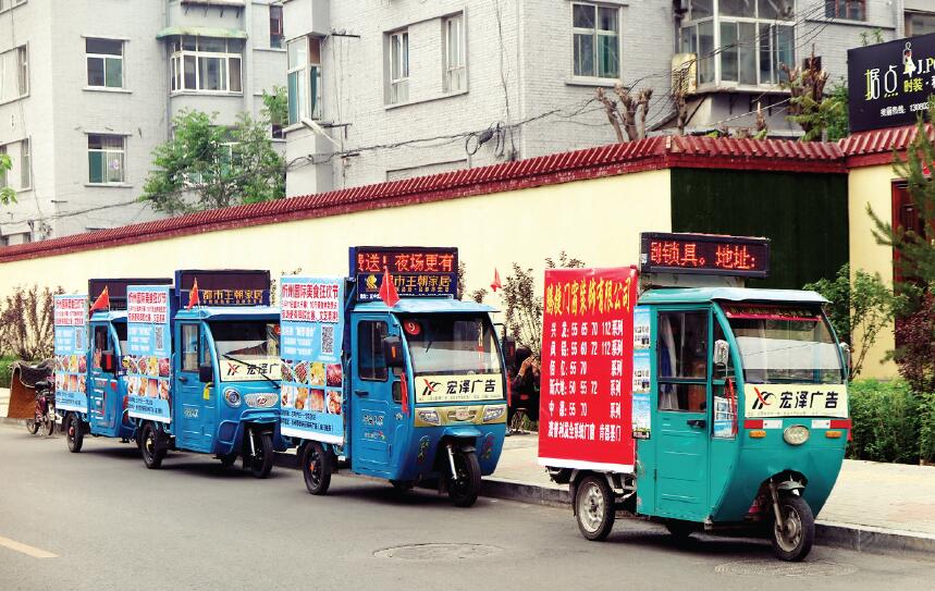目前,我市正在創(chuàng)建全國文明城市,希望有關(guān)部門能夠同步跟進,下大力、出重拳,治理突出問題,切實改善城市面貌,不斷提高老百姓的幸福感和滿意度,為我市創(chuàng)建全國文明城市添磚加瓦。圖為停在非機動車道上的電動三輪廣告車。張志遠 攝
