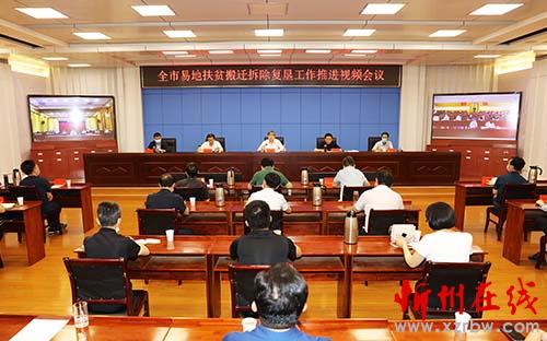 全市易地扶貧搬遷拆除復墾推進會會場。范濤 攝