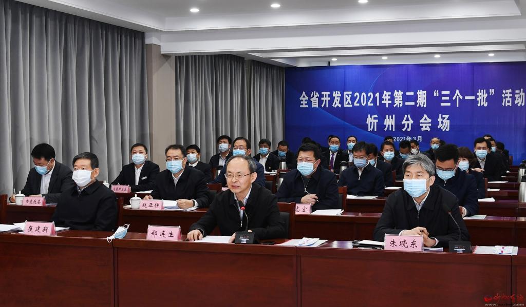 鄭連生在忻州分會(huì)場(chǎng)匯報(bào)工作。劉紀(jì)森 攝 鄭連生向省委、省政府匯報(bào)忻州開發(fā)區(qū)2021年第二期“三個(gè)一批”活動(dòng)情況。忻州按照省委省政府開發(fā)區(qū)“三個(gè)一批”活動(dòng)安排部署,認(rèn)真堅(jiān)持“四比四看”,統(tǒng)籌包裝、招商、簽約、落地、開工、建設(shè)、投產(chǎn)“七個(gè)一批”滾動(dòng)閉環(huán)推進(jìn),努力促進(jìn)項(xiàng)目建設(shè)順利進(jìn)行。此次全市開發(fā)區(qū)“三個(gè)一批”活動(dòng),集中簽約項(xiàng)目44個(gè)、總投資89.99億元,涉及高端裝備制造、新材料、節(jié)能環(huán)保、現(xiàn)代農(nóng)業(yè)、現(xiàn)代服務(wù)業(yè)等行業(yè)領(lǐng)域;集中開工項(xiàng)目41個(gè)、總投資120.46億元,涉及高端裝備制造、新材料、生物醫(yī)藥、現(xiàn)代農(nóng)業(yè)等行業(yè)領(lǐng)域;集中投產(chǎn)項(xiàng)目25個(gè)、總投資44.2億元,涉及現(xiàn)代服務(wù)業(yè)、生物醫(yī)藥、高端裝備制造、新材料、現(xiàn)代農(nóng)業(yè)等行業(yè)領(lǐng)域。 鄭連生表示,下一步,忻州將繼續(xù)認(rèn)真貫徹省委、省政府關(guān)于開發(fā)區(qū)“三個(gè)一批”活動(dòng)的決策部署,繼續(xù)堅(jiān)持項(xiàng)目為王,聚焦“六新”突破,加快完成開發(fā)區(qū)二次改革,切實(shí)以“三個(gè)一批”活動(dòng)有力推動(dòng)開發(fā)區(qū)高質(zhì)量高速度轉(zhuǎn)型發(fā)展。