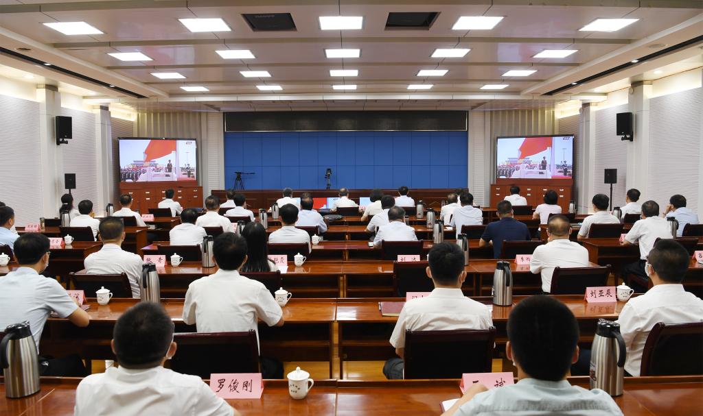 市領(lǐng)導(dǎo)集中收聽收看大會實(shí)況直播。劉紀(jì)森 攝