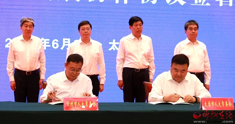 會前,太原、忻州兩市人大常委會共同簽署太忻經(jīng)濟一體化發(fā)展協(xié)作協(xié)議。