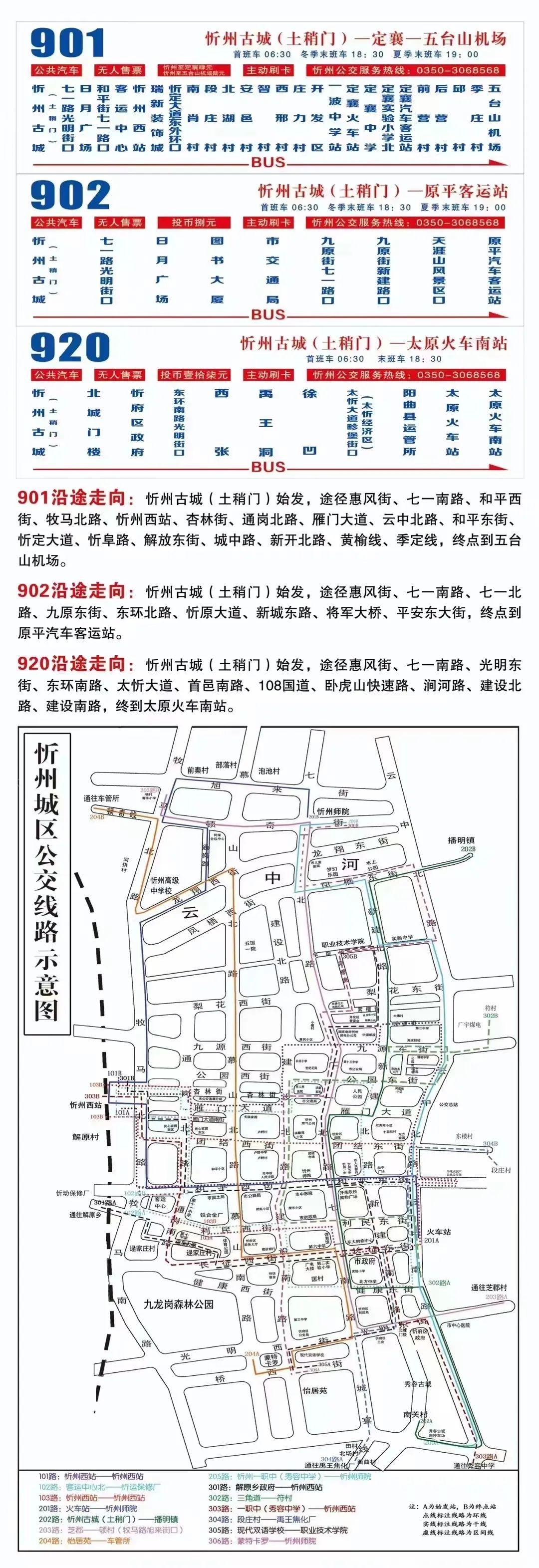 一、忻州古城至太原火車南站(920路)