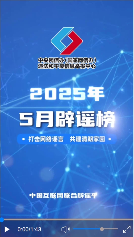 打擊網(wǎng)絡(luò)謠言 共建清朗家園 中國(guó)互聯(lián)網(wǎng)聯(lián)合辟謠平臺(tái)2025年5月辟謠榜