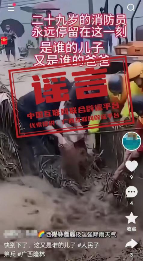 辟謠:網(wǎng)傳“一名消防員在廣西隆林抗洪救援任務中犧牲”為不實信息
