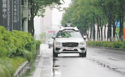 6月27日,上海啟動智能網(wǎng)聯(lián)汽車規(guī)?;痉稇?yīng)用,一輛智能網(wǎng)聯(lián)汽車在路上行駛。