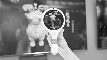 2021中國國際數(shù)字經(jīng)濟博覽會工作人員展示通過AR探索鏡掃描獲取文物相關信息 新華社記者 金皓原 攝