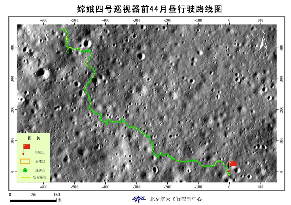 嫦娥四號(hào)巡視器前44月晝行駛路線圖。北京航天飛行控制中心供圖