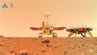 祝融號(hào)火星車拍攝的“著巡合影”圖。新華社發(fā)