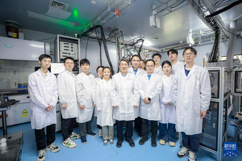 圖為薛其坤與研發(fā)團(tuán)隊(duì)在實(shí)驗(yàn)室(資料照片)。新華社發(fā)(受訪者供圖)