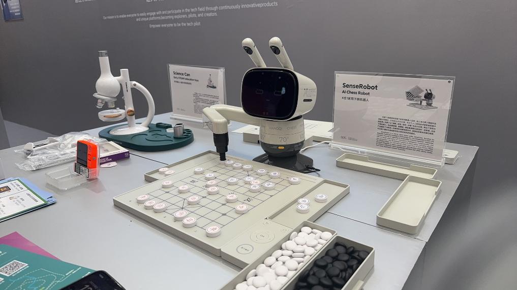 在2025全球開發(fā)者先鋒大會“模速空間”專場上展示的AI下棋機器人。 新華社記者程思琪 攝