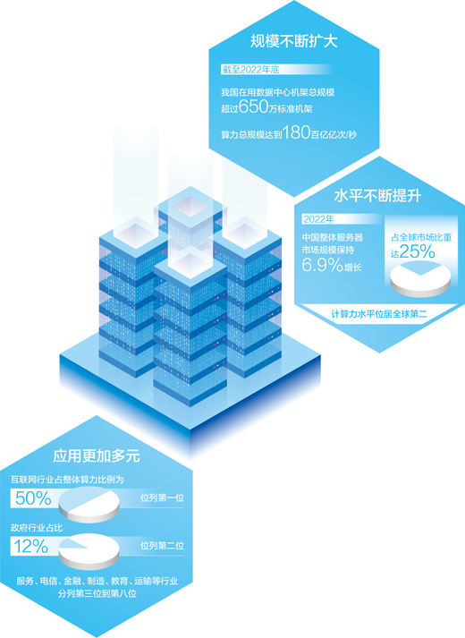 《2022—2023全球計算力指數(shù)評估報告》顯示,2022年,中國整體服務(wù)器市場規(guī)模保持6.9%的正增長,占全球市場比重達(dá)25%,計算力水平位居全球第二。近年來,我國算力產(chǎn)業(yè)蓬勃發(fā)展,融合應(yīng)用深度不斷拓展。算力作為數(shù)字經(jīng)濟(jì)時代的關(guān)鍵生產(chǎn)力,有效賦能千行百業(yè)數(shù)字化轉(zhuǎn)型,推動新興產(chǎn)業(yè)發(fā)展。