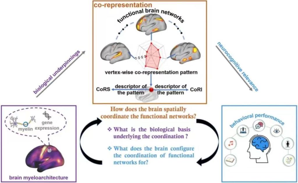 這項研究加深了對大腦功能組織模式的理解,揭示了腦區(qū)參與到不同腦功能網絡的模式,并探索了其背后的解剖學基礎和遺傳因素。此外,研究人員利用大規(guī)模、高質量人腦功能磁共振數據,獲取了不同尺度的個體化腦功能網絡,并提出網絡在空間上共表征的概念,發(fā)展了共表征特異性和共表征普遍性的定量指標。