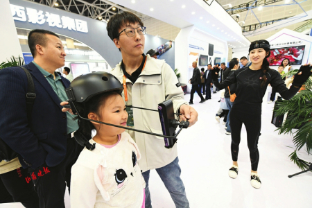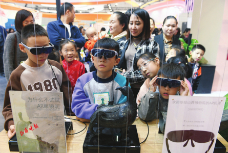1.在第六屆山西文化產(chǎn)業(yè)博覽交易會現(xiàn)場,觀展者在體驗虛擬數(shù)字人。