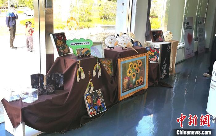 “真誠(chéng)”是記者對(duì)這里的第三印象。在店內(nèi),其設(shè)有舟山市特殊教育學(xué)校學(xué)生作品展區(qū),點(diǎn)鉆畫、手工扇等作品,工藝精美;店里的愛心墻上,貼著五彩繽紛的貼紙?!霸改阊劾镉袗郏闹杏泄狻薄霸感切堑暮⒆硬辉賾峙吕щy,勇敢向前”……這些貼紙上的話,都是顧客“打卡”時(shí)留下的“最美祝?!?。