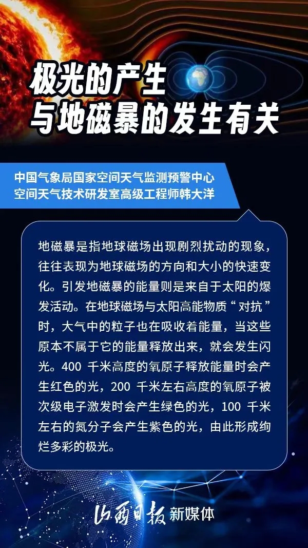 近日,我國多地出現(xiàn)極光現(xiàn)象,引起人們廣泛關(guān)注。極光現(xiàn)象與地磁暴活動(dòng)密切相關(guān)。地磁暴以及近期頻繁出現(xiàn)的太陽耀斑為什么發(fā)生?對人們的生活有影響嗎?下面一起來看專家解讀。