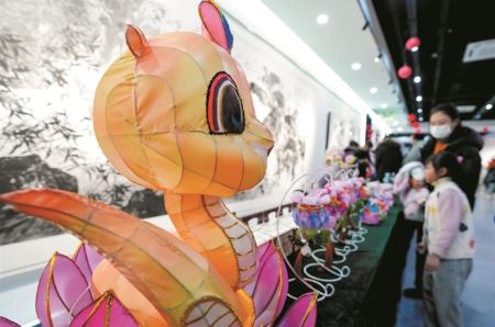 1月11日,“春風(fēng)文潤 迎春展演暨惠民活動(dòng)”在位于南京的江蘇省文化館新街口文化客廳舉行,讓市民通過看演出、觀展覽、享非遺等多種形式,在家門口享受高品質(zhì)的文藝活動(dòng)。圖為市民們在活動(dòng)中參觀非遺項(xiàng)目秦淮燈彩。