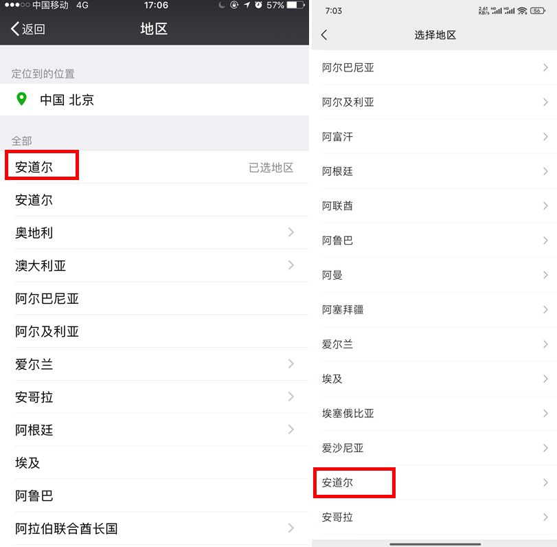 第一個原因就跟微信設置地區(qū)的順序有關。早些時候注冊微信,選擇歸屬地的列表是按照中文拼音排序的,安道爾由于其中的“A”和“D”都靠前,所以排在了地區(qū)中的第一位。