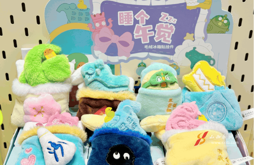 除“睡個午覺”系列外,山西博物院“逛吃逛吃”毛絨掛件、“檐之?有物”古建筑毛絨玩具、其樂“絨絨”噗噗捏捏樂毛絨掛件、“卣”點(diǎn)意思毛絨筆記本,以及暑期爆款文創(chuàng)發(fā)飾等新品,造型生動、實(shí)用美觀,以“輕量化”形態(tài)讓觀眾近距離感受山西歷史文化魅力。