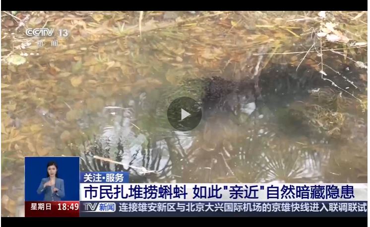 中國林業(yè)科學(xué)研究院生態(tài)所副研究員 李佳:還是不要去捕撈它,讓它始終處于一個自然的環(huán)境當中,不要去破壞它,我們自然教育的目標不是把自然帶回家,而是把對自然的愛帶回家,教育孩子溫柔對待一只蝌蚪的時候,未來他也能溫柔對待整個世界。