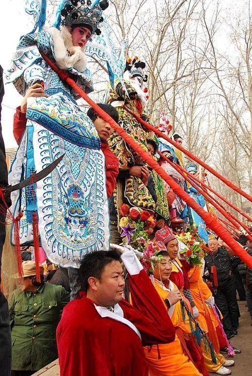 在有些地區(qū),“閣”甚至被搭成了一個“戲臺”般的樣子,除去人物還有布景,能使人一眼就看出“閣”上的故事。抬閣的壯漢也增加到八名一組,大家需要在行走中保持步調(diào)一致的同時,大力顛簸,技術(shù)含量極高。這項(xiàng)表演至今都是各地春節(jié)社火表演中壓軸的重頭戲。