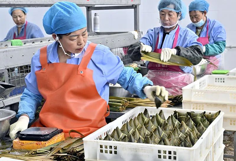 二是工藝出“粽”。“三片葦葉,三顆棗,一百克糯米不能少。”青塘粽子不僅全手工傳統(tǒng)工藝包制,更輔以現(xiàn)代高溫滅菌和真空包裝技術(shù),傳統(tǒng)與現(xiàn)代相結(jié)合,讓青塘粽子美味更健康。