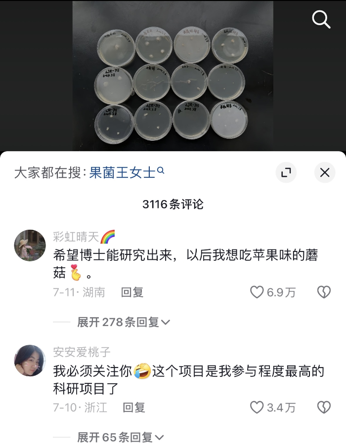 其次,他們“網(wǎng)友有疑問,科普來解惑”的科普答疑方式很活。趙琪老師和許博士在收到“果菌王”后,會實時更新研究最新進(jìn)展,硬生生地把科普變成了“連續(xù)劇”。