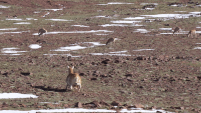 下午三點(diǎn)鐘,高原的太陽開始有點(diǎn)暖意,正是藏羚羊覓食的高峰。餓了一夜的藏羚羊,這邊一群,那邊一群,像芝麻一般,撒滿了卓乃湖畔的坡梁山崗。