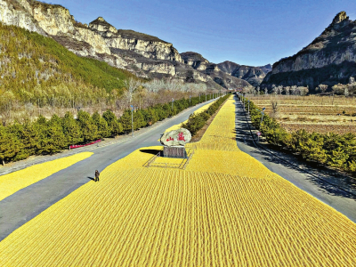 山西晚報(bào)·山河+訊(記者 溫麗芳)近日,在陽(yáng)泉盂縣藏山景區(qū),一條由金黃玉米鋪就的“黃金大道”,在青山、藍(lán)天的映襯下,構(gòu)成一道別樣的冬日風(fēng)景。據(jù)了解,藏山景區(qū)主動(dòng)騰退千米道路,為周邊農(nóng)戶提供免費(fèi)晾曬場(chǎng)地,讓豐收的玉米與巍峨的太行山水相映成畫(huà),繪就了一幅農(nóng)旅共融的生動(dòng)圖景。