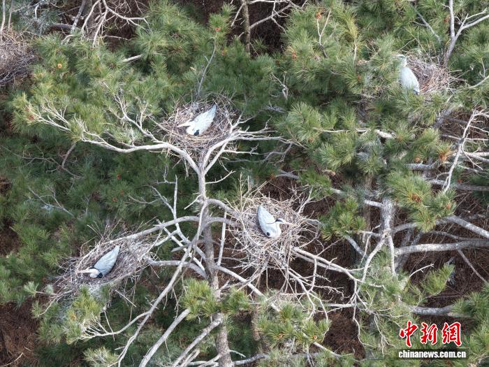 中新網(wǎng)呂梁3月30日電 (范麗芳 郝鵬飛)連日來,中國各地氣溫回升。山西呂梁山腹地的方山縣積翠鎮(zhèn)劉家莊村,春風(fēng)拂過青山,草木吐露新芽,數(shù)十只蒼鷺如期遷徙歸巢,在村畔的高大楊樹上筑巢穩(wěn)窩,進(jìn)入孵蛋繁育期。
