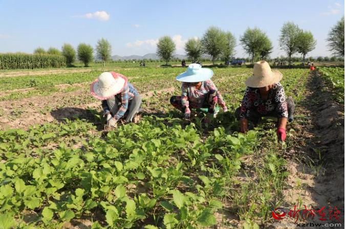 8月11日,原平市新原鄉(xiāng)平地泉村綠油油的芥菜長(zhǎng)勢(shì)喜人,農(nóng)民正在除草。近年來(lái),該市大力調(diào)整農(nóng)業(yè)產(chǎn)業(yè)結(jié)構(gòu),通過(guò)復(fù)播“訂單秋菜”,鼓了農(nóng)民“錢袋子”。諸 震 攝
