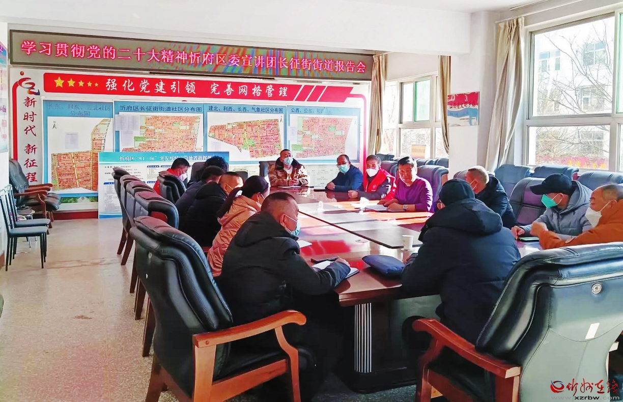 日前,忻府區(qū)委學習貫徹黨的二十大精神宣講團第七工作組走進長征街道宣講。所屬社區(qū)和村黨支部書記、機關(guān)干部參加會議。