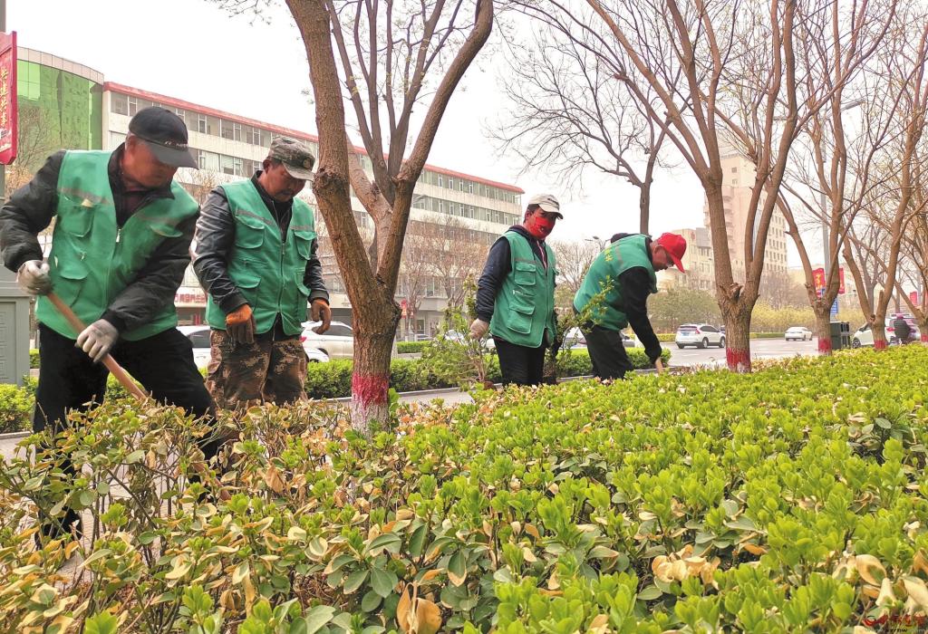4月14日,新綠園林隊(duì)工作人員正在忻州城區(qū)長(zhǎng)征西街補(bǔ)植綠籬。忻府區(qū)從三月上旬開始啟動(dòng)春季植綠補(bǔ)綠工作,對(duì)部分道路、小微地塊等進(jìn)行植綠補(bǔ)綠,消除黃土裸露,提升整體綠化水平。(宮清華 攝)