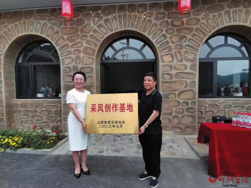 省音協(xié)常務(wù)副主席白云,原平市委常委、宣傳部部長(zhǎng)張志男為采風(fēng)創(chuàng)作基地愛木圖景區(qū)授牌。