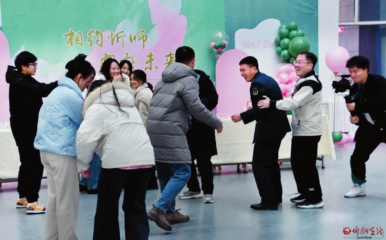 活動(dòng)現(xiàn)場(chǎng)氣氛熱烈、溫馨歡樂。大家面對(duì)面交談,互相介紹基本情況、興趣愛好,打開心扉、暢所欲言。通過各類游戲互動(dòng),“鐵血”與“柔情”碰撞出甜蜜火花。“我尊敬軍人,向往軍營,在這次活動(dòng)中不僅認(rèn)識(shí)了部隊(duì)優(yōu)秀青年,還進(jìn)一步了解到軍人的優(yōu)良品質(zhì),收益多多,希望以后能多舉辦這樣的活動(dòng),切實(shí)服務(wù)廣大青年在婚戀交友方面的需求?!毙弥輲煼秾W(xué)院一名青年女教師表示。