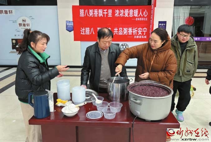 活動當(dāng)天,社區(qū)工作人員對現(xiàn)場認(rèn)真消毒后,就開始熬粥:淘洗糯米,去除蓮心,把蜜棗切成小塊,再放入紅豆、桂圓、冰糖等多種食材,慢慢熬煮后,軟糯香甜的紅豆粥完成了。“喝上一碗熱乎乎的甜粥,心里也熱乎乎的。”環(huán)衛(wèi)工人李大媽開心地說。
