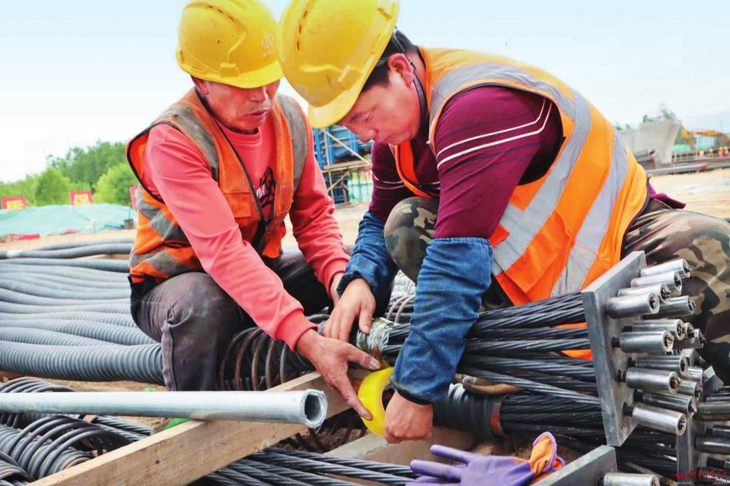 記者近日走進(jìn)南北通道菱形立交橋工地,只見密密匝匝的鋼筋林立如網(wǎng),奮戰(zhàn)在太忻大道一線的工人們頂烈日、冒酷暑、戰(zhàn)高溫,汗流浹背、干勁不減。技術(shù)員仔細(xì)檢查著每一個(gè)接口、鋼筋工熟練準(zhǔn)確排布每一組鋼筋結(jié)構(gòu),井然有序,規(guī)范自如?!澳媳蓖ǖ懒庑瘟⒔粯蚬こ淌琼?xiàng)目中兩處混凝土澆筑工程之一,目前工程前期準(zhǔn)備工作已接近尾聲,全部澆筑工程任務(wù)將在9月10日前完成?!表?xiàng)目一隊(duì)負(fù)責(zé)人尹耀軍自信滿滿。