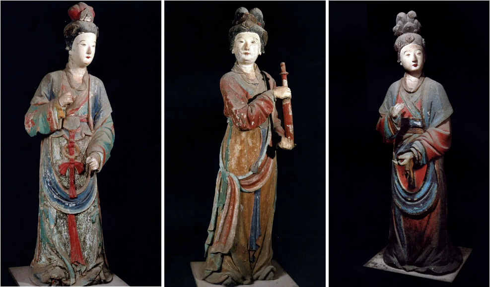 晉祠圣母殿侍女像作于北宋元佑年間,約1082年左右,是晉祠彩塑中最出色的一組人物塑像。伴隨著微弱的光,一尊尊宋代侍女塑像便緩緩走進(jìn)了紀(jì)錄片的鏡頭。