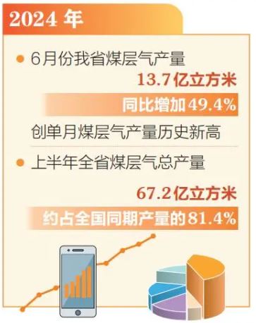 7月23日,記者從山西省統(tǒng)計(jì)局獲悉,今年6月份我省煤層氣產(chǎn)量13.7億立方米,同比增加49.4%,創(chuàng)單月煤層氣產(chǎn)量歷史新高。今年上半年全省煤層氣總產(chǎn)量67.2億立方米,約占全國同期產(chǎn)量的81.4%。