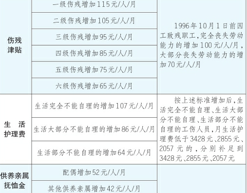 本報(bào)訊省人社廳、省財(cái)政廳日前下發(fā)通知,經(jīng)省政府同意,我省調(diào)整全省工傷職工傷殘津貼、生活護(hù)理費(fèi)和因工死亡職工供養(yǎng)親屬撫恤金水平。